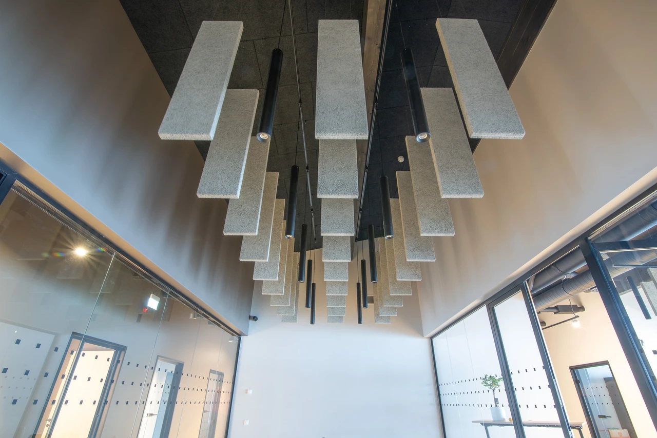 Akustiskās dizaina plātnes biroja sienu un griestu apdarei